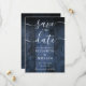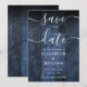 This elegant blue rustic barn wood boho wedding save-the-date card can be personalized with your information in chic typography. Designed by Thisisnotme©