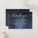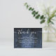 An elegant blue rustic barn wood boho wedding thank you reception card, personalized with a special message and the bride and groom's names. Designed by Thisisnotme©