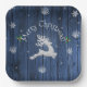 Bring rustic charm to your holiday gatherings with this Blue Rustic Christmas Reindeer Paper Plates, a perfect addition to your Christmas party supply. These sturdy plates feature a festive Christmas reindeer design set against a rustic wooden background, accented with vibrant holly berries, white snowflakes, and falling snow. The festive typography displaying "Merry Christmas" adds a joyful touch. Ideal for serving holiday treats, these plates combine style and functionality to elevate your seasonal celebrations with a cozy, wintry vibe.