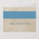 Elegant and chic Rustic Damask Wedding Table Number Postcard featuring a vintage textured paper look background and a flourish damask pattern border in blue. Easy to customize, simply add the appropriate table number(s) in the text field provided. Click "Customize It" to find more personalization options.