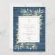 Blue Rustic Greenery Funeral Memorial Gold Cross Thank You Card