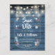 Blue Rustic Mason Jar String Lights Save The Date Announcement Postcard
