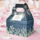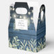 A stylish bridal shower favour box featuring delicate watercolor leaves and pretty string lights on a blue rustic wood background. You can personalize with your own thank you message on the reverse. A perfect way to say thank you to your guests! Designed by Thisisnotme©