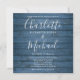 Featuring elegant signature style names on a blue rustic wood background, along with your chosen photo on the reverse, this stylish wedding invitation can be personalized with your wedding celebration details. Designed by Thisisnotme©