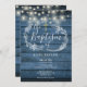 Blue Rustic Wood String Lights Foliage Baptism Invitation