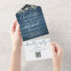 Blue Rustic Wood String Lights QR Code Wedding All In One Invitation