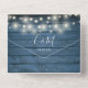 Blue Rustic Wood String Lights Script Wedding Designed by Thisisnotme Designs