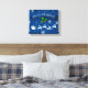 Adorn your walls with holiday cheer with this festive Blue Santa's Sleigh and Reindeer Stretched Canvas Print. Canvas Print design features Santa's sleigh adorned with holly berries and pulled by his reindeer against a blue background with falling snowflakes. Additional gift and holiday items available with this design as well.