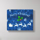 Blue Santa's Sleigh and Reindeer Canvas Print