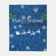 Blue Santa's Sleigh and Reindeer Fleece Blanket