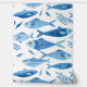 Coastal-inspired wallpaper featuring a blue sardine watercolor pattern in soft ocean tones. Perfect for kitchens, dining areas, or beach-style interiors, this seamless design adds a fresh, Mediterranean feel to your space.