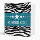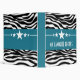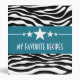 Trendy and modern Sassy Star Zebra Recipe Binder featuring a chic black and white zebra print background and a bold royal blue border adorned with a fun star motif. This girly design may be customized with the personalized text of your choosing. Click "Customize It" to find more personalization options.