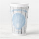 Enjoy your morning coffee with this elegant Blue Scallop Shell Latte Mug. Mug design features a vintage scallop shell and custom text for you to personalize with your family name against a wooden background. Additional home decor items available with this design.