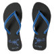 Blue scorpion drawing with 3D shading. Custom background colour. Custom text on both flip flops.