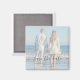 Announce your wedding date to your family and friends in a unique way with these Save the Date square magnets featuring your favorite photo with a sheer white overlay. Personalize with your names, wedding date and location in a blue handwritten script