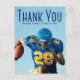Thank You written in tall blue typography over your senior portrait graduate photo makes a simple graduation thank you postcard for a football player on a sports team. Customize with your name and class of 2026 on these minimalist text overlay graduate postcards. Write a personalized message of thanks on the back.