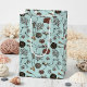 This Blue Scuba Diver and Coral Illustration Medium Gift Bag features hand-drawn illustrations of skeleton scuba divers swimming under the sea among red corals, all against a blue background.