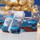 Blue sea wave. Artistic splashes of bright paints. Wrapping Paper