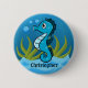 Cute badge button featuring a blue seahorse in an underwater scene. Below is a template to add your name to personalize.