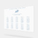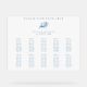 Un élégant tableau de sièges en acrylique bleu et blanc, parfait pour un mariage à la plage avec une illustration de style vintage d'un coquillage. La disposition peut contenir jusqu'à 10 tables.