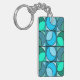 Seventies design keychain featuring abstract rounded shapes in shades of blue and green.