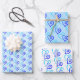 This light and dark blue linked heart pattern design is featured with a different colour background on three separate sheets. Have it on hand, ready to use for birthdays, congratulations, or other celebration gift wrappings.