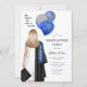 Blue silver She believed she could, so she did graduation invitation. Features blonde woman portrait graduate with blue silver glitter balloons, graduation cap and gown for the Class of 2024. Perfect grad party invite for high school grads, university grads, and graduate school grads.