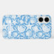 Customize this blue shell pattern iPhone 16 case with your your name in a trendy modern CAP font in blue on white. It's so modern and beachy!