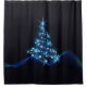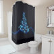 A dark blue that is almost black with a shinning star swathed Christmas tree,