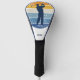 Blue Silhouette Golfer on Retro Stripe Golf Head Cover