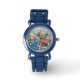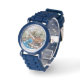 Training watch for kids who don't know the time and how it's measured in the 24 hours of a day. The background shows a turtle on an island trying to look at the shore (and in this case, the numbers that show the time; it's hand-painted in watercolor by Isabela Macavei, an American veteran.