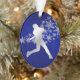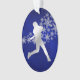 This pretty Holiday ornament will make a wonderful keepsake gift for anyone who loves baseball! It features a silver silhouette batter in full swing against a spray of silver snowflakes. Everything is placed on a vivid blue background. The back of the ornament has the same silver snowflake spray with your custom text above and below it.
