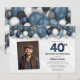 Blue Silver Black & White 40th Birthday Photo Invitation