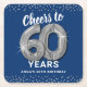 Blue Silver Cheers to 60 Years Birthday Square Paper Coaster