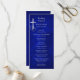This elegant wedding program card features two silver hearts at the foot of a stunning silver cross at the upper left corner. The cross and heart images shine against a blue abstract background. There is plenty of room for your customized text, also in silver. If you need to change the font, size, location, or colour of the text, use Customize It. The back of the invitation has the same blue background without the text or images.