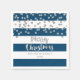 Merry Christmas napkins for holiday season with navy blue and white stripes pattern and silver festive confetti.