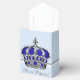 Elegant royal blue and silver prince crown baby shower favour boxes. These beautiful blue and silver prince baby shower favour boxes can be personalized with text and you can change the ribbon colour.