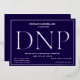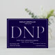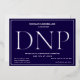 A DNP graduation party invitation with silver foil, white text, and a blue background. Simply add your information, add this invitation to your cart, and celebrate this major accomplishment.
