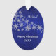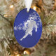 This pretty Holiday ornament will make a wonderful keepsake gift for anyone who loves football! It features a silver silhouette football player against a spray of silver snowflakes. Everything is placed on a vivid blue background. The back of the ornament has the same silver snowflake spray with your custom text above and below it.