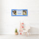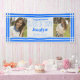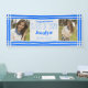 Hang this Blue Silver Geometric Two Photos Graduation Banner to celebrate your graduate. Personalize with two photos, name, school, and class year. This class of 2024 school colours banner features feminine font and a decorative silver and blue border.