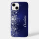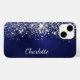 A blue background. The blue colour is uneven. Decorted with faux glitter dust. Personalize and add a name. The first name is written with a modern hand lettered style script.