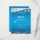 Blue, silver grey, white snowflake winter wedding RSVP response/reply card, featuring a waved band in silver grey with stars and blue elegant snowflakes on glowing gradient sky blue background. Modern and contemporary yet suitable for a traditional wedding. This elegant, classy and stylish design can be used for other special occasions such as engagements or anniversaries.. A perfect choice for winter, December or Christmas weddings.