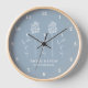 Blue Silver Minimalist Curly Floral Wall Clock
