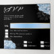 A beautiful all-in-one luxurious and glam design featuring a pretty blue rhinestone ball gown set against a black background infused with delicate floral rose flowers and silver decorative corner edges. The bottom third has a tear off response card with personalized rsvp address and meal options for your guests to complete. These are ideal for a quinceanera; bridal shower; any age milestone birthday or a special event to celebrate woman. Personalize the wording; the background colour and add your own photo to make it unique.