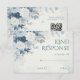 Elegant blue silver winter floral wedding RSVP card featuring a QR code modern script and dusty watercolor flowers with botanical boho calligraphy design