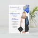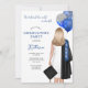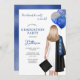 She believed she could, so she did graduation girl invitation. Features woman graduate with blue and silver glitter balloons, graduation cap and gown.
