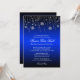 A modern winter gala ball invitation featuring silver snowflakes on a black and blue background. Designs are flat printed graphics - NOT ACTUAL SILVER FOIL / SPARKLE.