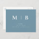 Blue Simple Contemporary Monogram Save the Date Postcard