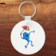 This charming theatrical bright blue frog is singing for joy in the summer rain while dancing with a colourful umbrella.