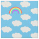 Cute pattern with white clouds, tiny rainbows, on blue for the sky.